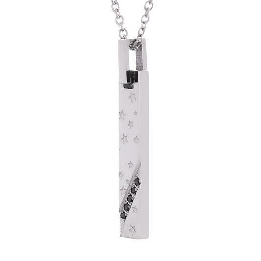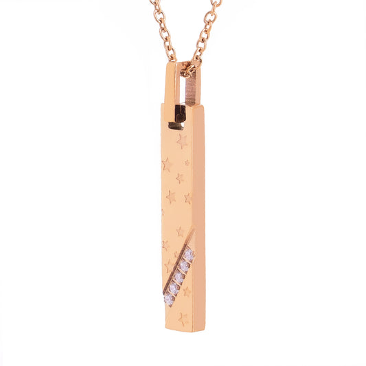 Truelements(トルゥーエレメント) カップル お揃い シルバー & ピンクゴールド 棒 プレート スター ペアネックレス 星 ペンダント トップ ジルコニア サージカル ステンレス 金属 アレルギー 316l [ペア] (TEST-0047)