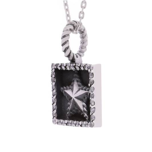 Truelements(トルゥーエレメント) スクエア スター メンズ ネックレス シルバー 925 星 ジルコニア チャーム ペンダント トップ (TE200-0028) (チェーン付き)
