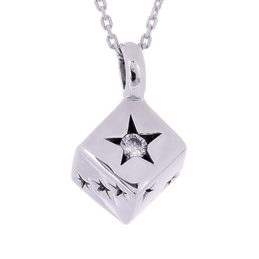 Truelements(トルゥーエレメント) スター サイコロ メンズ ネックレス シルバー 925 星 ダイス ジルコニア ペンダント トップ (TE200-0001) (チェーン付き)