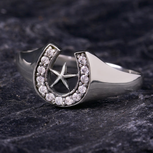Truelements(トルゥーエレメント) 蹄鉄 星 指輪 メンズ 幸運 ホースシュー スター リング 馬蹄 シルバー 925 ジルコニア (TE300-0005)