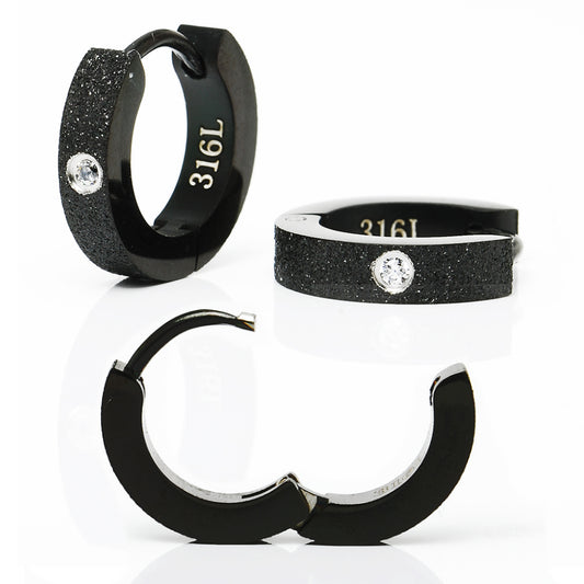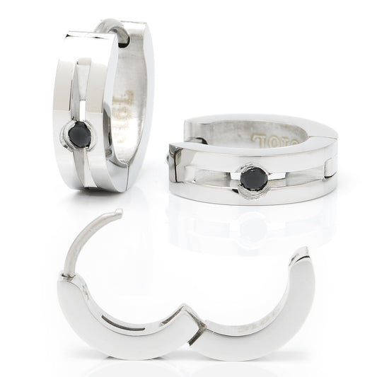 Truelements(トルゥーエレメント) メンズ レディース フープ ピアス サージカル ステンレス 金属アレルギー対応 316L リングピアス クリア ジルコニア 片耳用 [ブラック] ユニセックス デザイン (TEEST-0033-20BK) (1個売り)通常価格 ¥1,600 JPY通常価格単価 / あたり-