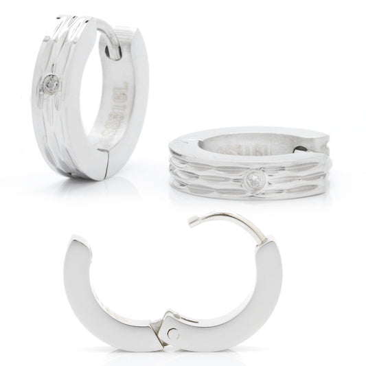 Truelements(トルゥーエレメント) メンズ レディース フープ ピアス サージカル ステンレス 金属アレルギー対応 316L リングピアス クリア ジルコニア 片耳用 [シルバー] ユニセックス デザイン (TEEST-0033-20SV) (1個売り)通常価格 ¥1,600 JPY通常価格単価 / あたり-