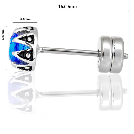 Truelements(トルゥーエレメント) ピアス メンズ シルバー 王冠 片耳用 4mm ブルー (青) ジルコニア シンプル クラウン スタッド サージカル ステンレス 316L 金属アレルギー対応 (TEEST-0051M) (1個売り)通常価格 ¥1,500 JPY通常価格単価 / あたり
