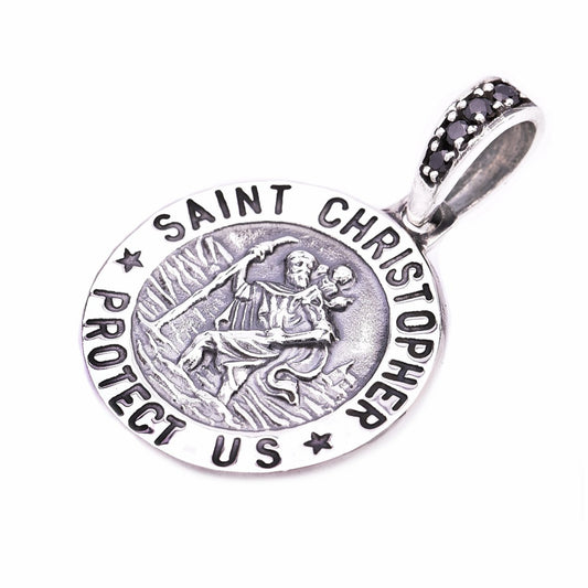 Truelements (トルゥーエレメント) メンズ シルバー925 奇跡のメダイ ネックレス セントクリストファー 聖人ペンダント 不思議のメダイ トップ ブラック [黒] ジルコニア [Lサイズ] (TESV-0273) (トップのみ)