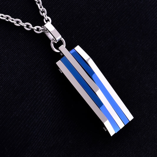 Truelements(トルゥーエレメント) メンズ ネックレス サージカルステンレス 金属アレルギー 316L ブルー プレート ペンダントトップ (TEST-0032)