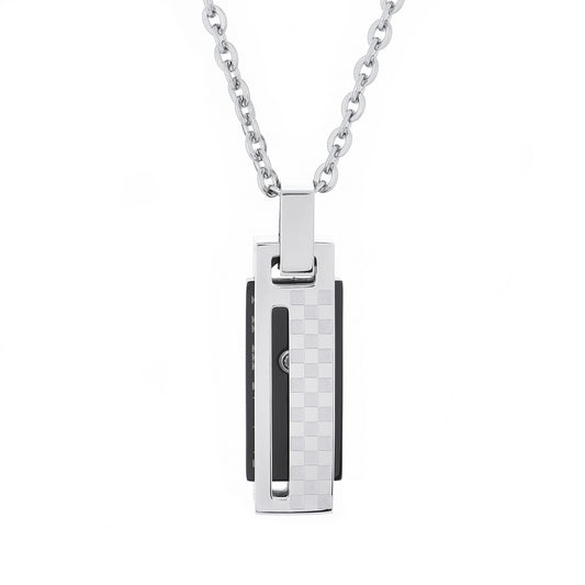 Truelements(トルゥーエレメント) メンズ ネックレス シルバー 925 スクエア ペンダント トップ 天然石 オニキス チャーム (TE200-0044) (チェーン付き)