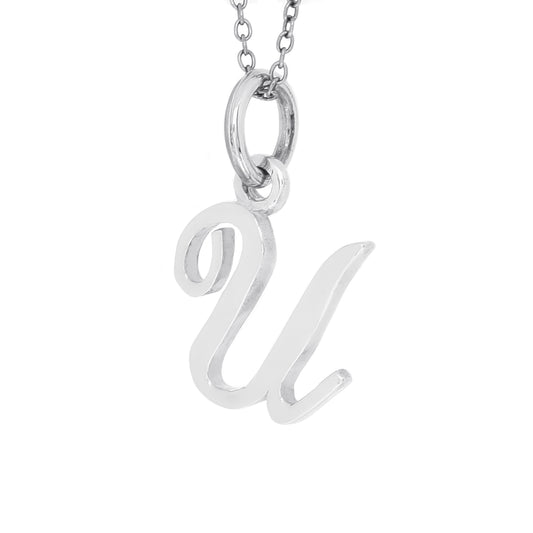 Truelements(トルゥーエレメント) ネーム イニシャル ネックレス メンズ レディース シルバー 925 シンプル アルファベット (U) チャーム 名前 ペンダント トップ チェーン サージカル ステンレス 金属 アレルギー 316l (ABC-U) (チェーン付き)