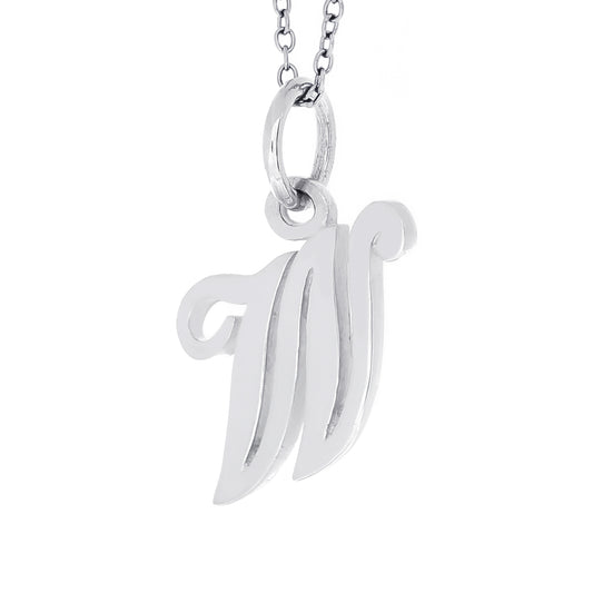 Truelements(トルゥーエレメント) ネーム イニシャル ネックレス メンズ レディース シルバー 925 シンプル アルファベット (W) チャーム 名前 ペンダント トップ チェーン サージカル ステンレス 金属 アレルギー 316l (ABC-W) (チェーン付き)