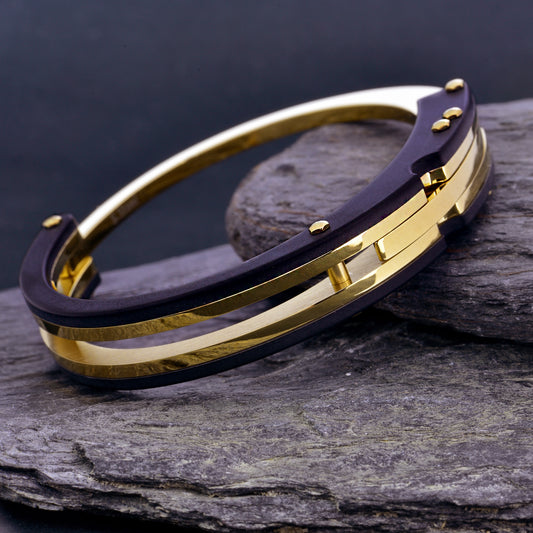 Truelements(トルゥーエレメント) ブレスレット メンズ ゴールド ハンドカフ サージカル ステンレス 金属 アレルギー 316l 手錠 バングル (TEST-0082)