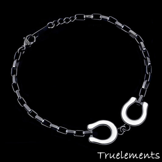 Truelements(トルゥーエレメント) 馬蹄デザイン メンズ ブレスレット ブラック サージカルステンレス 316L 金属アレルギー対応 ラッキーホースシュー (TESAM-0141)