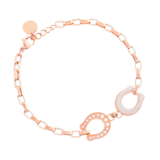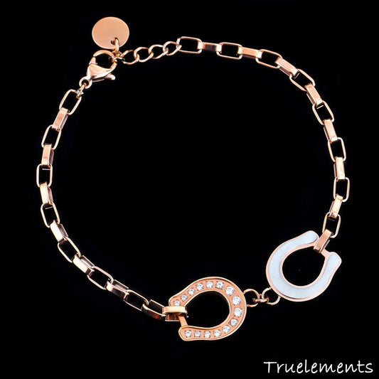 Truelements(トルゥーエレメント) 馬蹄デザイン レディース ブレスレット ピンクゴールド クリアジルコニア サージカルステンレス 316L 金属アレルギー対応 ラッキーホースシュー (TESAM-0141)