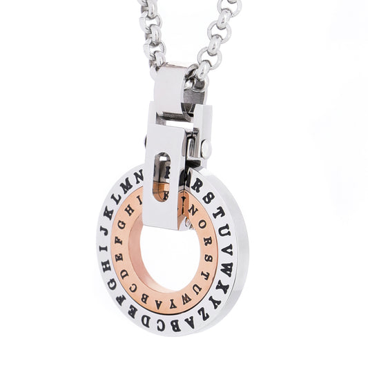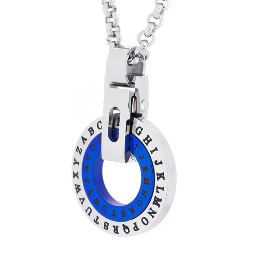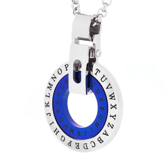 Truelements(トルゥーエレメント) カップル お揃い ネーム イニシャル ペア ネックレス サージカル ステンレス 金属 アレルギー 316l ブルー & ピンク ゴールド サークル ペンダント トップ [ペア] (TEST-0026 #L & #S)