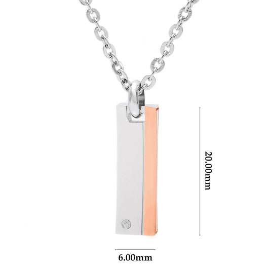 Truelements(トルゥーエレメント) ペアネックレス サージカル ステンレス 金属 アレルギー 316l お揃い カップル ネックレス プレート ペンダントトップ ジルコニア [ペア] (ブルー & ピンクゴールド) (TEST-00-26#S-1 Pair)