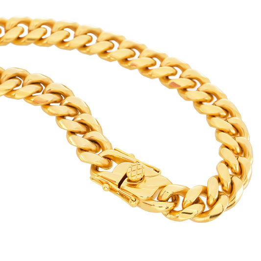 Truelements(トルゥーエレメント) ネックレス メンズ 幅8mm 18K コーティング ゴールド マイアミ キューバン ヒップホップ ラッパー シンプル 4面カット ステンレス 喜平 チェーン アレルギー対応 [50cm] (TECST-00-21)