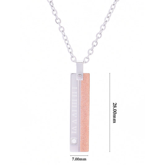 Truelements(トルゥーエレメント) カップル お揃い シルバー & ピンクゴールド 棒 プレート スター ペアネックレス 星 ペンダント トップ ジルコニア サージカル ステンレス 金属 アレルギー 316l [ペア] (TEST-0047)