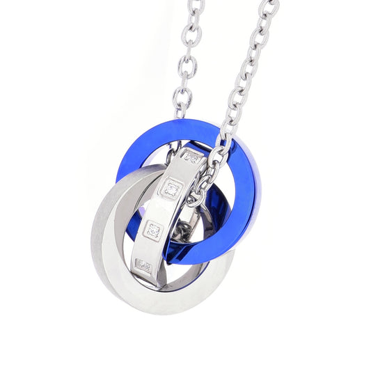 [TRUELEMENTS] トルゥーエレメント ペア ネックレス 3連リング サージカルステンレス 316L 金属アレルギー対応 カップル お揃い ペンダントトップ クリア ジルコニア (TEST-0051)