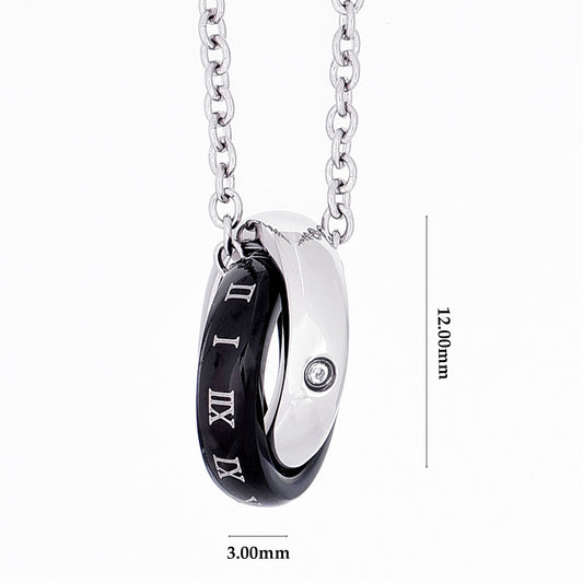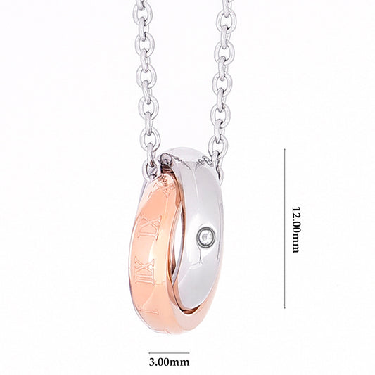 Truelements(トルゥーエレメント) ローマ数字 ペアネックレス サージカル ステンレス 金属 アレルギー 316L カップル お揃い ネックレス ダブル リング ペンダント トップ ジルコニア (ブラック & ピンクゴールド) [ペア] (TEST-0062 Pair)