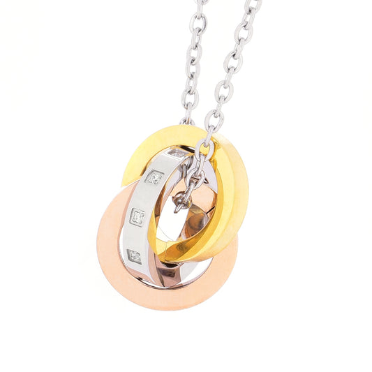 [TRUELEMENTS] トルゥーエレメント レディース ネックレス 3連リング サージカルステンレス 316L 金属アレルギー対応 ゴールド & ピンクゴールド ペンダントトップ クリア ジルコニア (TEST-0051)