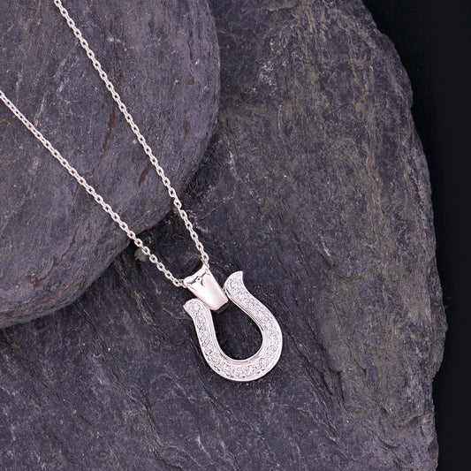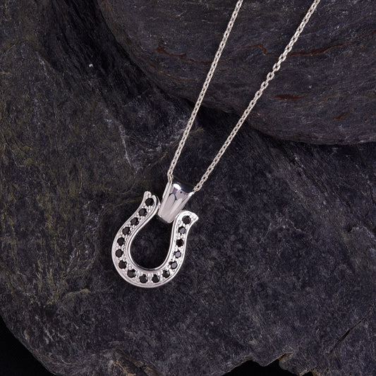 Truelements(トルゥーエレメント) ホース シュー ネックレス メンズ シルバー 925 ジルコニア 馬蹄 ペンダント トップ (TE200-0003) (チェーン付き)