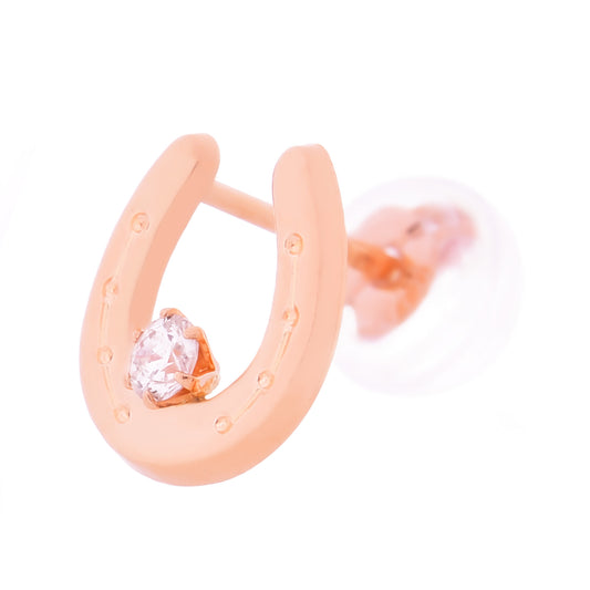 Truelements(トルゥーエレメント) 18金 ピアス 蹄鉄 レディース ダイヤモンド 0.02ct イヤリング K18 18K ピンクゴールド スタッド 幸運 ホースシュー 馬蹄 18金キャッチ付 日本製 両耳用 TE18KDMHS-001 PG (2個売り)