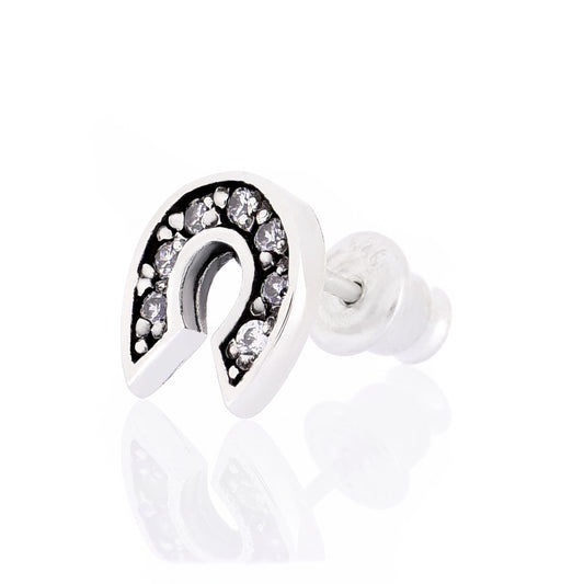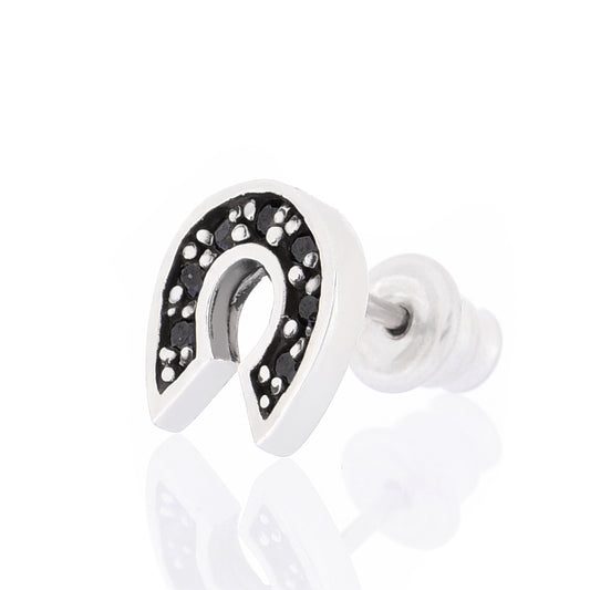 Truelements(トルゥーエレメント) メンズ ピアス 蹄鉄 スタッド シルバー 925 幸運 ホースシュー 馬蹄 ジルコニア 片耳用 (TE400-0018) (1個売り)
