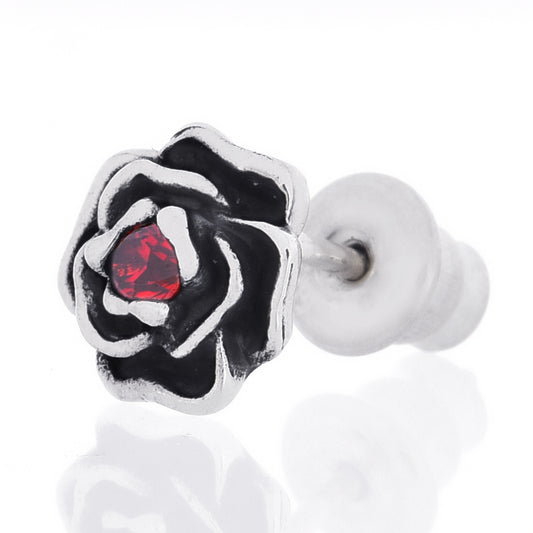 Truelements(トルゥーエレメント) 薔薇 ピアス メンズ ローズ スタッド シルバー 925 ジルコニア レッド [赤] 片耳用 (TE400-0016) (1個売り)