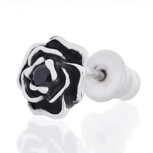 Truelements(トルゥーエレメント) 薔薇 ピアス メンズ ローズ スタッド シルバー 925 ジルコニア ブラック [黒] 片耳用 (TE400-0016) (1個売り)