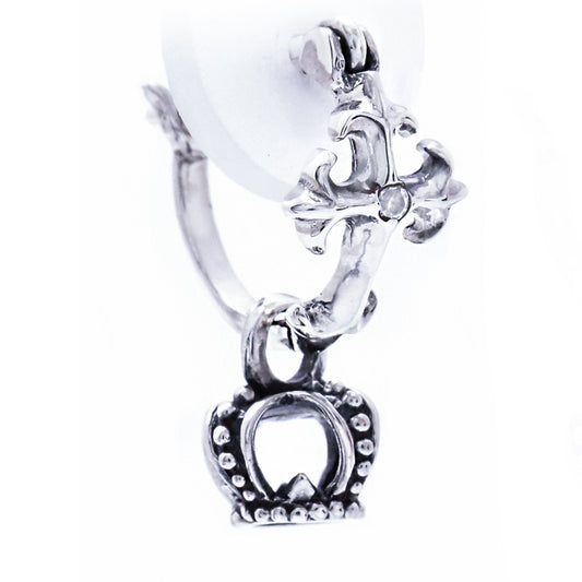 Truelements(トルゥーエレメント) メンズ ピアス シルバー 925 クロス フープ ドロップ 揺れる クラウン [王冠] ジルコニア 片耳用 (TESV-0051) (1個売り)