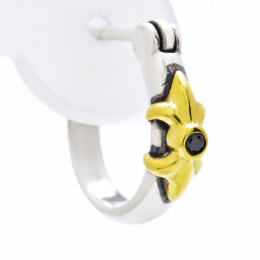 Truelements(トルゥーエレメント) メンズ ピアス シルバー 925 フープ ゴールド クロス リリー ブラック [黒] ジルコニア 片耳用 (TESV-0222) (1個売り)