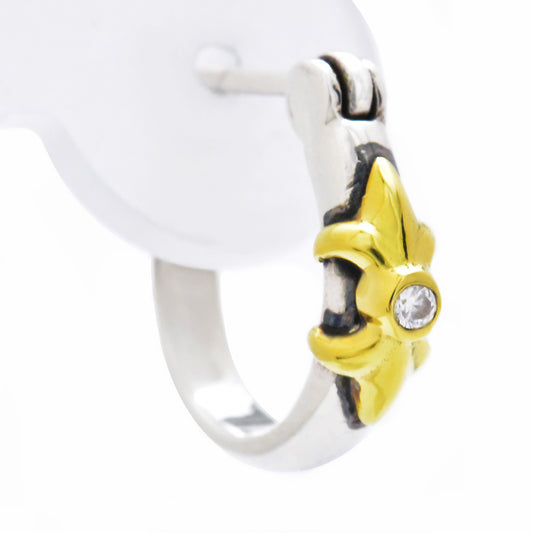 Truelements(トルゥーエレメント) メンズ ピアス シルバー 925 フープ ゴールド クロス リリー ジルコニア 片耳用 (TESV-0222) (1個売り)