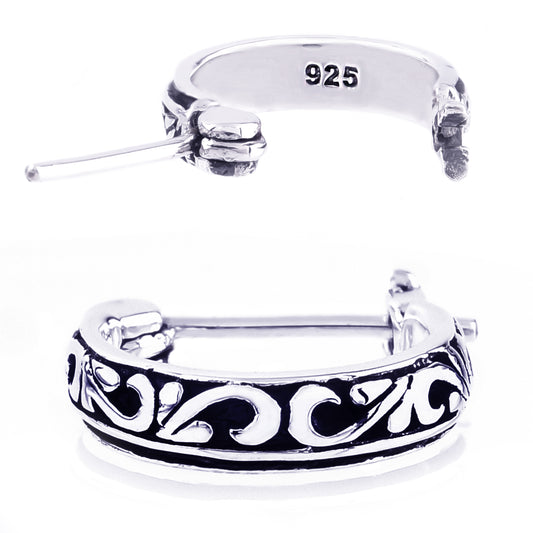 Truelements(トルゥーエレメント) シルバー 925 刻印 アラベスク メンズ フープ ピアス 片耳用 (TESV-0428) (1個売り)