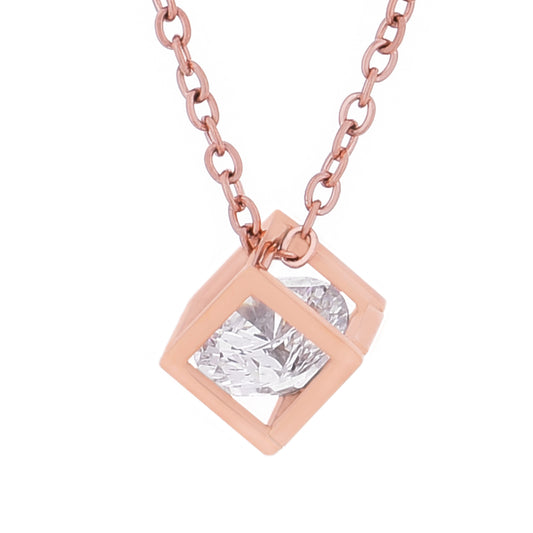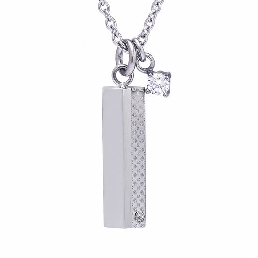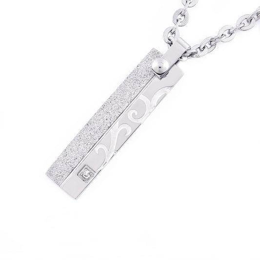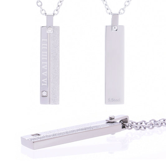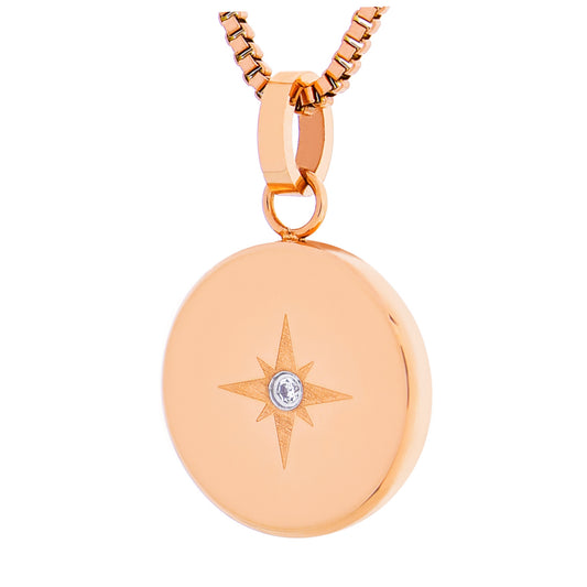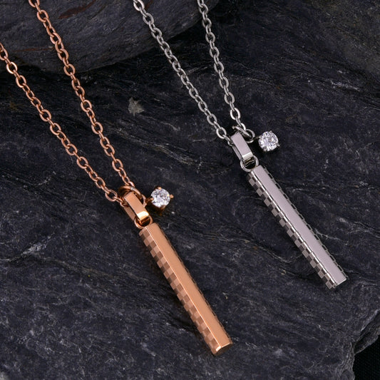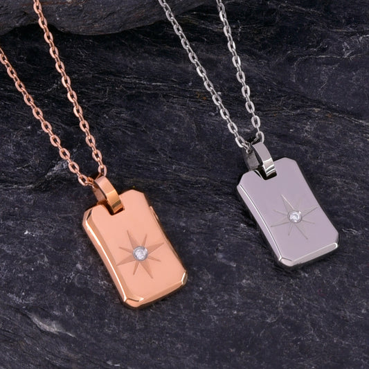 Truelements(トルゥーエレメント) カップル お揃い シルバー & ピンクゴールド 棒 プレート スター ペアネックレス 星 ペンダント トップ ジルコニア サージカル ステンレス 金属 アレルギー 316l [ペア] (TEST-0047)