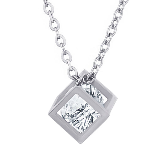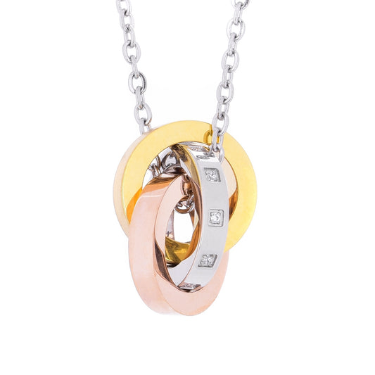 [TRUELEMENTS] トルゥーエレメント ペア ネックレス 3連リング サージカルステンレス 316L 金属アレルギー対応 カップル お揃い ペンダントトップ クリア ジルコニア (TEST-0051)