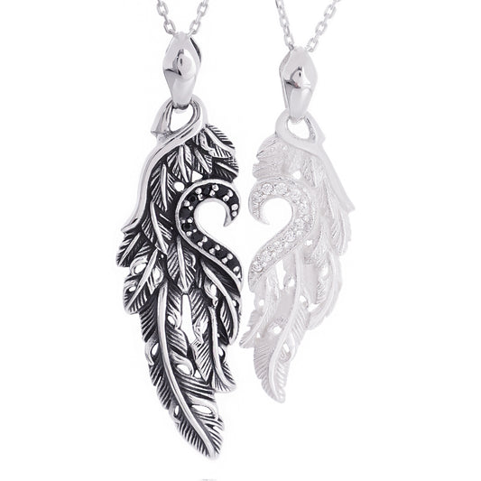 Truelements(トルゥーエレメント) カップル お揃い フェザー ペア ネックレス シルバー 925 羽 ペンダントトップ ジルコニア [ペア] (TESV-0207) (トップのみ)