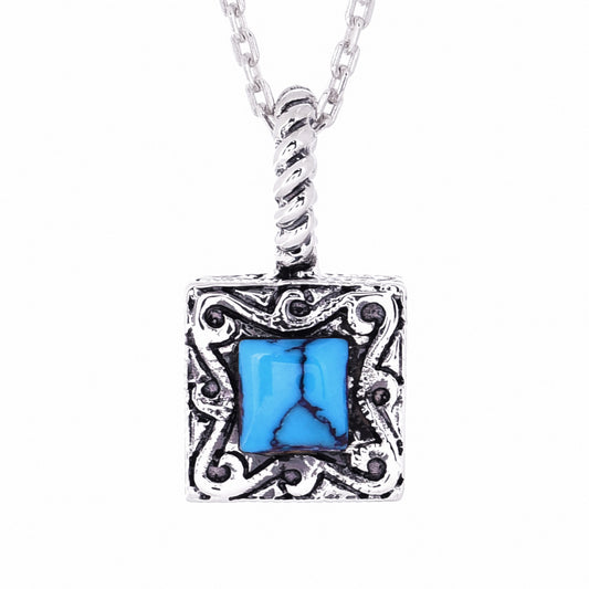 Truelements(トルゥーエレメント) メンズ ネックレス シルバー 925 スクエア ペンダント トップ ターコイズ チャーム (TE200-0044) (トップのみ)