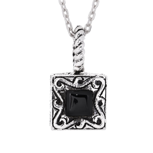 Truelements(トルゥーエレメント) メンズ ネックレス シルバー 925 スクエア ペンダント トップ 天然石 オニキス チャーム (TE200-0044) (トップのみ)
